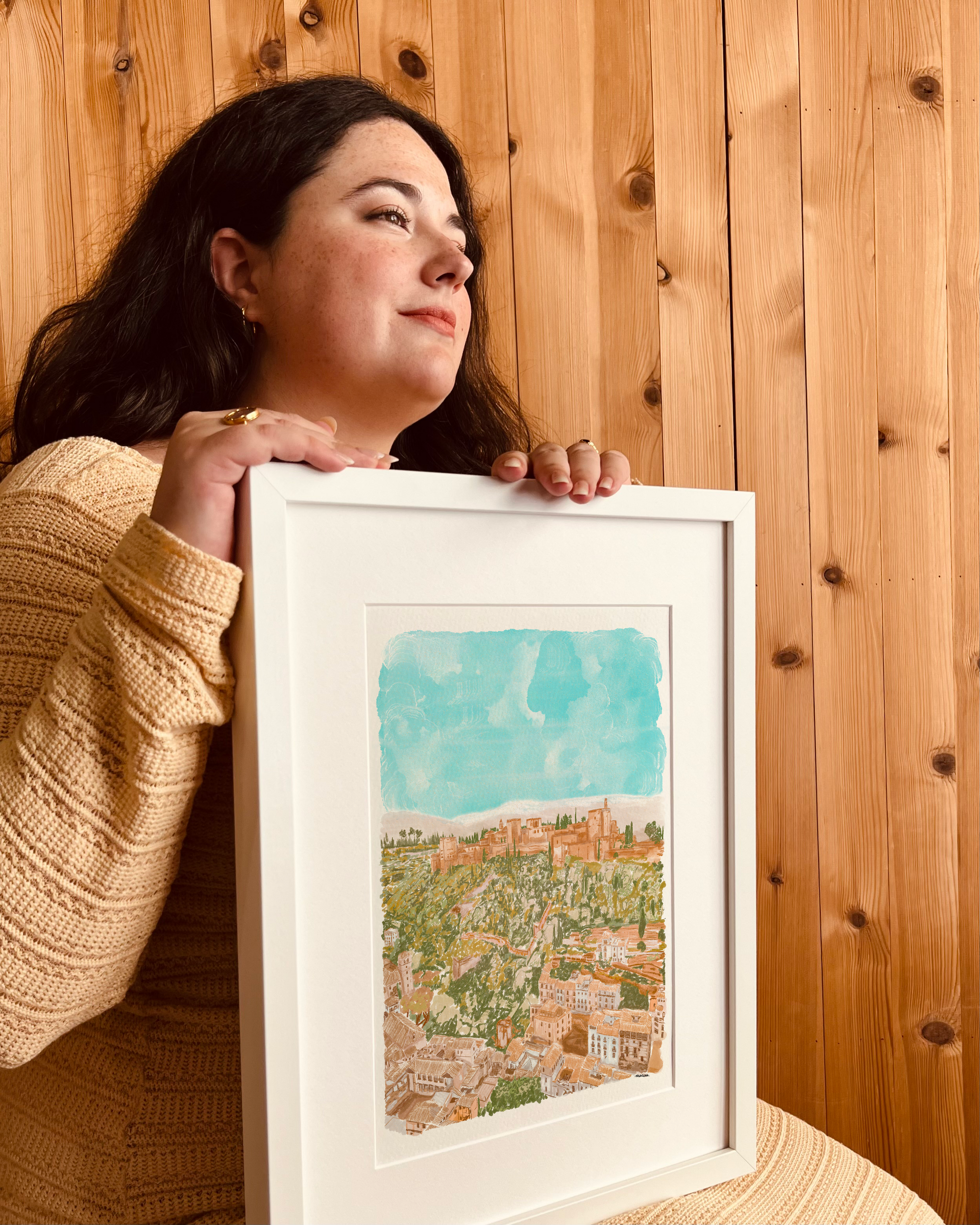 Esta lámina va en una funda de celofán para que no se estropee si no escoges marco. Esta, y todas mis láminas van acompañadas de un envoltorio súper bonito para regalar, con un espacio para una dedicatoria y una pegatina de regalo.